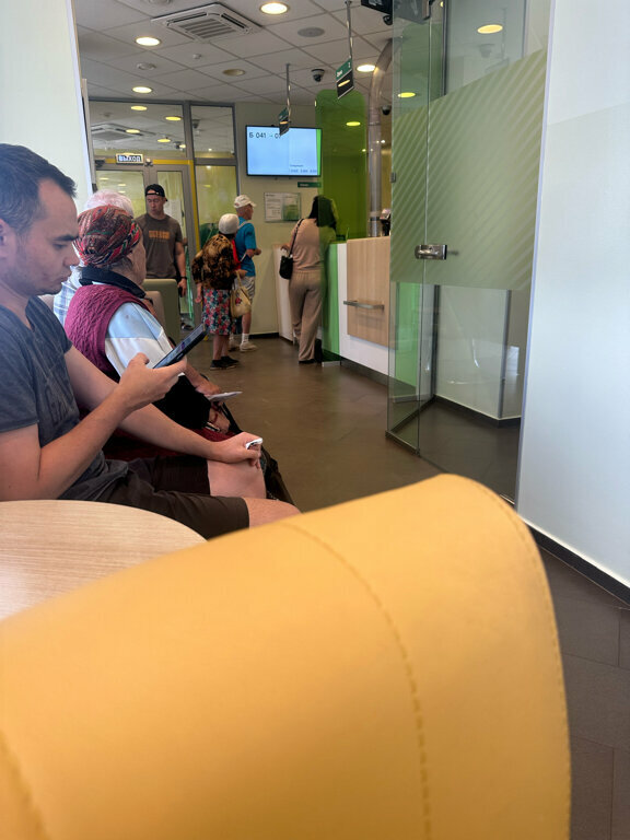 В этом отделении всегда многолюдно и очередь, работают два специалиста. Странно, что отделение сбербанка, которое находится в очень проходимом месте, не выводит на работу больше сотрудников (при наличии пустых не работающих окон, их всего 10, а работает 2), создавая очереди, в большинстве своем из пожилых людей. В дни пенсии тут вообще не протолкнуться. Заказала на перевыпуск карту, просидела 40 минут чтобы ее получить. Ставлю высокую оценку исключительно за вежливость и терпение сотрудников. То малое количество, которое работают, удивительно спокойны и по 10 раз объясняют пенсионерам одно и то же. На входе нет девушки, которая обычно находится в отделениях банка и помогает с правильным талоном. Из за этого многие не правильно берут талон, потом операционист объясняет как взять правильный талон, из за этого опять же увеличивается время ожидания. В отделении стоят диванчики, можно удобно расположиться, в этом еще один плюс.