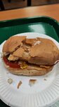 Я всё понимаю, сам работал в общепите, пёк блины, и понимаю как надоедают люди, у самого были неудачи, плохие дни и всё такое, но мне кажется даже для меня это немного слишком, всё-таки я переделывал то, что получилось не очень, а тут ну объективно выглядит не очень. Начинка выпала с бутерброда, её взяли закинули назад как какую-то тряпку, булочка в принципе разваленная какая-то. Выглядит честно говоря не очень аппетитно