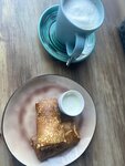 Отличная атмосфера. Детская площадка внутри, отличное решение. Есть несколько столов под зонтиками и газон. Разрешили туда прийти с маленькой собакой. Спасибо большое. Еда отличная. Дети были очень рады.