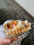 Вапще унылая шаурма. Лепешка тонкая, соуса мало, мяса мало даже в двойной порции, начинка непрогретая. Шаурмена спросил что за овощи в начинке - говорит те, что на витрине. На витрине капусты не было, а в шаурму он её зачем-то напихал. Кароч, очень не рекомендую эту шавуху((