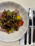 Ресторан расположен в отеле Волжская Ривьера, но принимает гостей из вне. Строгого дресс-кода нет, но атмосфера располагает к приличному наряду. Нам удалось поужинать на видовой веранде, столик лучше бронировать заранее. Если вы гурман, то вам определенно сюда. Бокал холодного вина на закате, скрасил ожидание заказа - это ресторан, не фаст-фуд, будьте готовы немного подождать. Мы насладились незаурядными гастрономическими изысками местного шефа - оценка 5. Тартар на вид странно выглядит (на фото), но он очень вкусный. Также очень приветливый и профессиональный официант добавил вечеру толику юмора и уюта. Рекомендую.