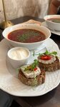 Свернув с многолюдного Арбата в тихий переулок, зашли в ресторан «Секретное место» - заинтриговало название. Официанты - высший пилотаж. Зал небольшой, но уютный. Заказали борщ, пельмени и оливье с красной рыбой. Все блюда очень вкусные. Порадовал борщ, подаваемый с хлебом и смальцем. Сметаны не пожалели, и мы не пожалели, что выбрали это место для обеда.