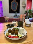 Небольшое кафе с приятной музыкой и интересными деталями интерьера. Меню небольшое, но очень вкусное. Пробовали все варианты подачи фалафеля - восторг (!), кабачковую вафлю с индейкой тоже очень вкусно.