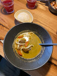 17.08.25г. посетили это место... Приглашение официанта по звонку, оказалось бесполезным, официант соизволил подойти минут через 20! Заказ дочери принесли через полчаса, а мы с внучкой смотрели, как она еле ещё полчаса, блюдо было не то, что указано в меню, без яйца, вместо бульон, просто кипяченая вода! Я отказалась это есть! Салат из битых огурцов подали без соевого соуса, дочь сама сходила за ним. За молочным коктейлем я сама сходила, он стоял на барной стойке, забытый официанткой! Ребёнок попробовав коктейль, сказала, что он не вкусный, пришлось и от него отказаться. Спросив имя официантки (представилась Настей), она пояснила, что если мы собираемся написать отзыв, то она не должна была нас обслуживать, а должна была Евгения, вообщем нас это уже мало интересовало. Вообщем, кухня не очень, обслуживание плохое, это при том, что посетителей было немного.
