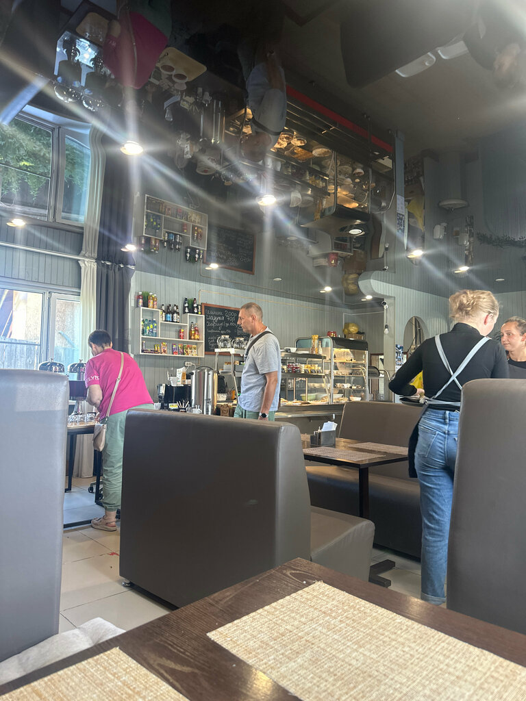 Обедали сегодня 1.05.2025 г в кафе, взяла суп куриный, пирожок с картошкой и рыбу горбушу под шубой, чай все обошлось в 425 руб Обед понравился Супчик отличный с курочкой, с зеленью, пирожок чудесный, тесто пушистое, сколько пробовала жаренных пирожков , такого вкусного раньше не ела Рекомендую Само помещение чистенькое, только отремонтированное, персонал- молодые девушки, очень милые. Обслуживание на отлично