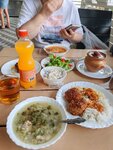 Очень хорошая столовая, отдыхали рядом в отеле, отдыхали с 1-13 августа. Очень вкусно готовят как дома, всегда свежие блюда и салаты, вечерами работает мангал, десерты просто супер и выпечка. По сравнению с другими столовыми, тянет на кафе. Мы приходили с собачкой всегда, очень дружелюбные хозяева и персонал.