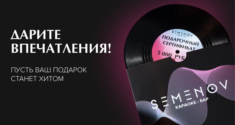 Дарите эмоции, атмосферу и любимые песни! Наши сертификаты номиналом 5 000, 10 000 и 15 000 ₽ — это готовый повод для яркого вечера в караок...