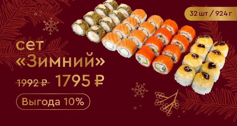 Праздничное настроение с доставкой от "Семга" —Сет "Новогодний " с уникальными роллами! Пусть ваш праздник станет по-настоящему особенным ...