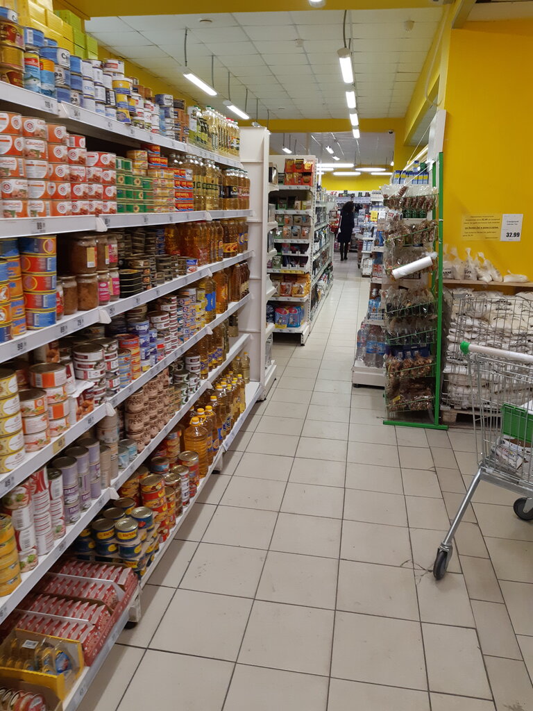 Средне статистический сетевой магазин. Цены удовлетворительные. Это плюс, но на этом и все плюсы закончились. Чистота не впечатляет. Выкладка товара ниже уровня других магазинов сетевой торговли. Ассортимент как везде. Но качество отдельных продуктов вызывает сомнение. Торговое оборудование расставлено очень плотно и поэтому проходы ОЧЕНЬ узкие, что на мой взгляд, нарушает все СанПиНы. Двум покупателям зачастую не разойтись. Во многих местах проходы уже 1,5 метра. А если идёт выкладка товара - то вообще мрак... За все это и не могу поставить ничего выше тройки. Персонал видимо затюкан руководством!!! Скидки - так себе. Расчетный узел требует реформации. Расположен магазин в удобном месте. Рекомендую.