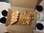 Ой, как хорошо что тут можно и с фото. Заказывали суши через деливери на 1600 ( 2 запеченных целых, 2 обычных и 4 половинок) Привезли мокрые коробки с половинками. Начинка не соответствует описанию, вместо краба крабовые палочки, сухой рис, угорь рассыпается, мокрые нори, и меньше чем сам рис, отдельно вырезали что-ли ( и это отзыв о 3х штуках которые попробовали). Все было холодное. Не могу понять восторженных отзывов, видно других не пробовали. Не забывайте это ресторан или кафе, и если вам что-то не нравится возращайте, деньги обязаны вернуть.