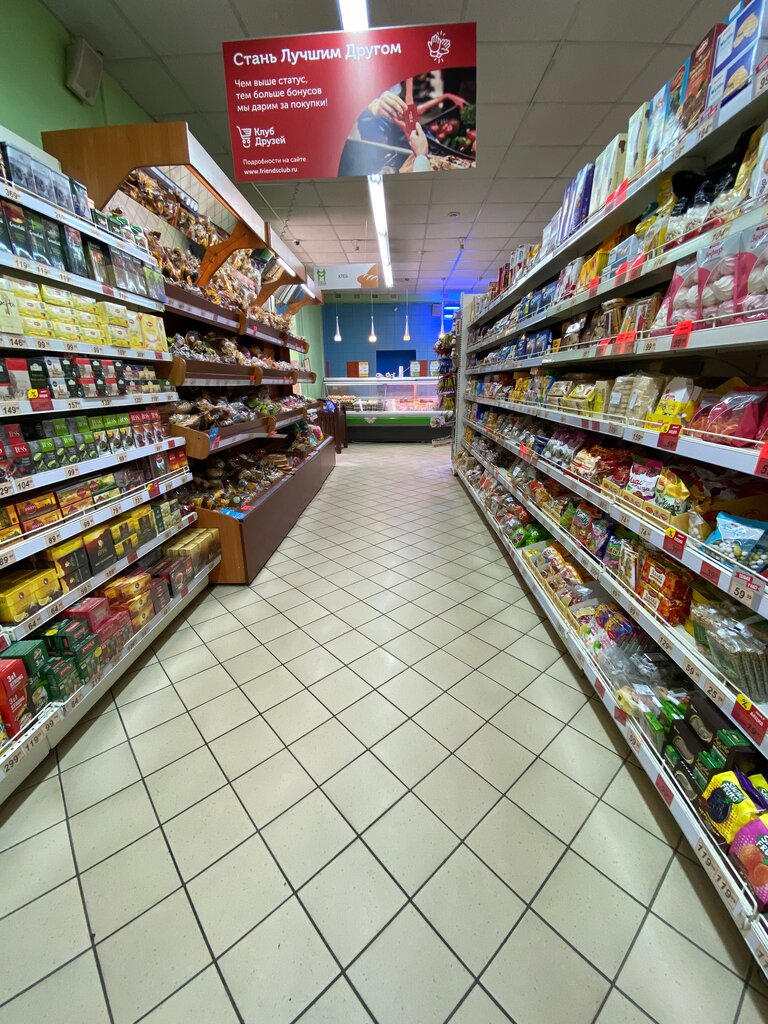 Магазин в шаговой доступности, реально рядом продуктовых магазинов нет, не считая частных маленьких. Есть все необходимое. Минус в том, что часто скапливаются толпы людей, чтобы оплатить покупки. И на кассах иногда работают "тормоза" !!! Порой хочется бросить товар прямо у кассы и пойти в другой магазин, реально нет борьбы за покупателя !!! Люди сами выбирают уровень обслуживания своим появлением в том или ином магазине и только мы сами можем изменить качество обслуживания !!!