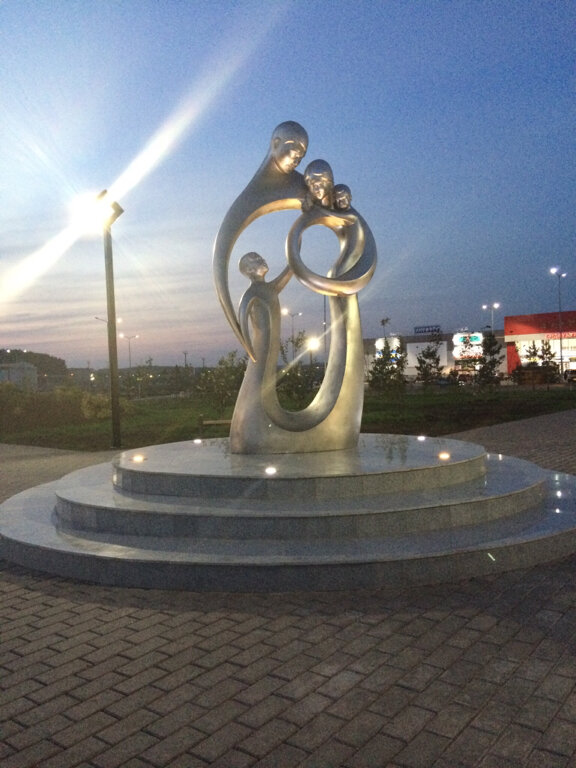 Оригинальная компазиция. Место выбрано оптимально- парк семьи(думаю, специально создана пол этот парк) прекрасно смотрится как днём, на фоне зелени, так и ночью- в свете прожекторов и другой иллюминацией. Не случайно, огромное количество прогуливающихся здесь семейных пар фотографируются на фоне именно этого памятника!