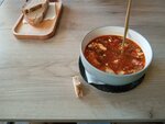 A great cafe in Berezeno, on the m4 highway, we were driving from Mogilev, we were for the first time and were pleasantly surprised: clean, cozy, there is a place in plain sight, there is like a second row, behind curtains. To order, you need to go to the counter, and the order itself is brought to your table. There is a toilet. We ordered a hodgepodge: 1. What struck me was the serving size (not 180-250 ml for children, as in many places now), but a full-fledged homemade deep plate for 500-600 ml. 2. It was incredibly delicious. 3. Low price. The place is definitely popular with the locals, we had a constant stream of people coming for shawarma and other goodies.