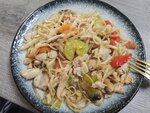 Udon is incomparable))) It would seem that noodles with vegetables. The food is delicious and very appetizing. The dish looks overloaded with butter, but when you eat it, there is no feeling of overkill. It's not the first time we've stopped by this place for lunch. I've never seen an empty room. Apparently the top shawarma, there's always a queue.