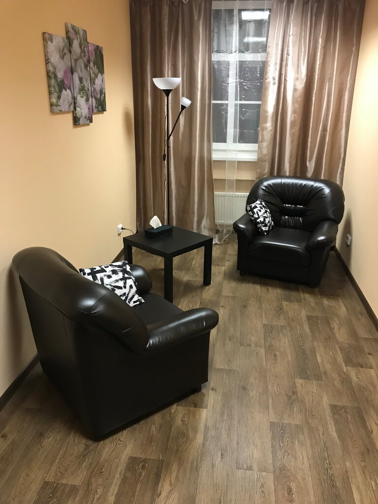 Много народу в холле, очень неуютное ожидание. Неудобные кресла в кабинетах, нет воды, платков. Слышимость во время сессии колоссальная, слышно все что происходит вокруг. Расслабиться невозможно. Здание офисное, туалет в конце коридора, мусорки заполнены. Мне не понравилось