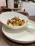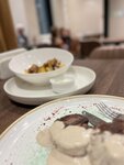 Чудесное место ! Небольшое кафе бар, с хорошим выбором напитков и отличной едой. Была приятно удивлена. Зашла перекусить ближе к вечеру. Есть веранда, где предложат пледы. Жаль погода испортилась и я расположилась внутри. Выбрала салат из хрустящих баклажан, печеный картофель с лисичками и филе миньон. Что сказать повар просто красавчик. Во первых и ждать долго не пришлось. Во вторых все блюда были горячими, я это обожаю, а не так что в заведении приносят чуть теплую еду. И все очень вкусно. Чудесная хрустящая корочка на баклажанах с теплыми томатами), лисички , и миньоны. Кафе на районе в закрытом ЖК и ничуть не уступает дорогим ресторанам . Браво . И хочется отметить официантов - благожелательные, идут навстречу, и просто красавицы.