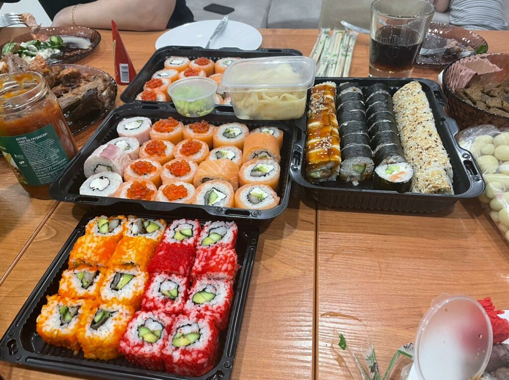 На днях были компанией -проездом в городе, подали все быстро …. Что радует. Креветки большие и вкусные с Ореховым соусом, картошка фри понравилась, роллы с угрем и чай ) Над остальным надо поработать - горячие роллы на вкус были как фарш из продуктов, не различаешь вкусов ингредиентов. Соевый соус к роллам был будто разбавленный ( Но больше всего НЕПРИЯТНО УДИВИЛО - это САЛАТЫ. Брали цезарь - вкусные в нем были креветки! Сухарики были местами пережаренные (черные) и очень сухие, что не разгрызть. Но убили - это томаты черри , которые в салат положили просто целыми (надеюсь помыли), не удосужившись нарезать!!! Это ребят верх лени поворов !!