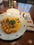 Заказывали столик заранее на 17:00 , но мы пришли раньше . Девушка хостес , приветливая, посадила нас раньше времени, спасибо)☺️ Есть ограничения по времени, но , нам вполне хватило времени на ужин . Интерьер обычный, в уборной было грязновато конечно. Официант обходительный, вежливый, сразу подошел , принял заказ. Время ожидания не большое . Заказывали лазанью, очень вкусно, нежное тесто , превосходный томатный соус . Фетучини с говяжьими щечками , вкусно, говядина таяла во рту 👌 Лимонады очень вкусные, но маленькие по объему ( много льда , напитка мало) Десерты тоже вкусные, нежные . Чай обычный, в чайничке . Хочу отметить красивую посуду при подаче блюд, я фанат такой посуды ! Спасибо за ужин 🍲