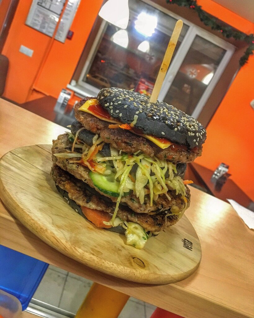 Бургеры вкусные - сочные котлеты, отличные булки и куча добавок по желанию. Брали картоху по деревенски - тоже весьма хороша! Правда чай в пакетике за 60 рублей, конечно, перебор!( Но в общем рекомендую!