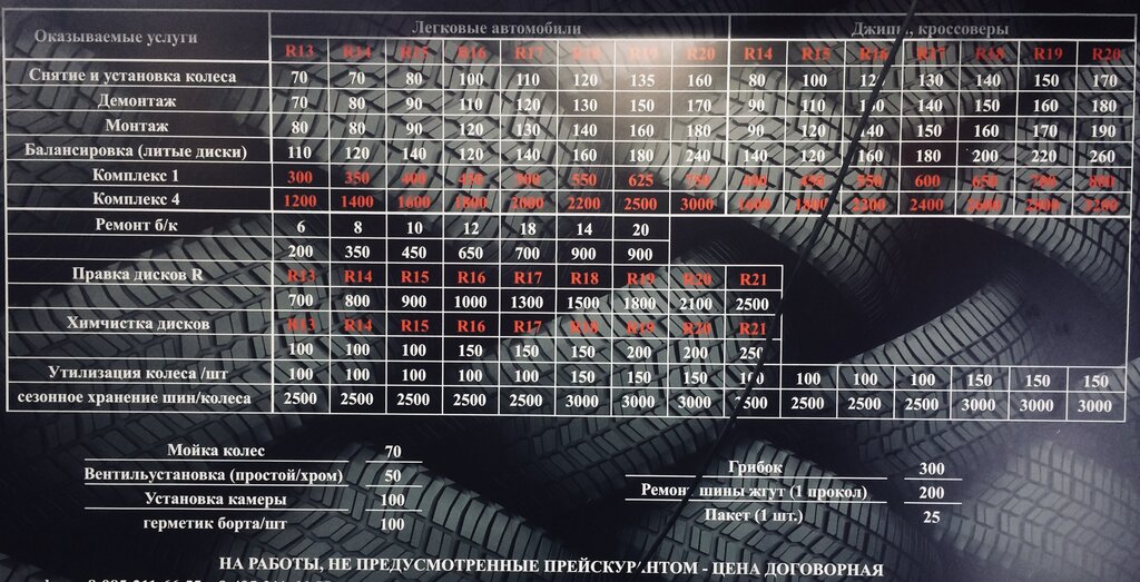 Шиномонтаж: на сайте расписание с 9 утра, бегущая строка на въезде - круглосуточно, по факту с 10 утра в связи с карантином, но нигде не сказано об этом. На въезде огромный плакат с ценой за замену 16-й резины 1500 рублей, по факту 1800.