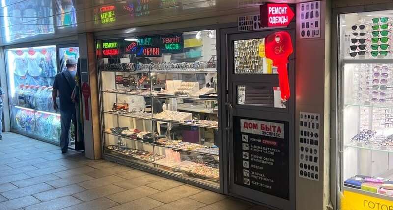 Отличное место! Редко где сейчас могут поставить кнопку, но здесь мастер аккуратно всё сделал. Если идти по подземному переходу от метро Павелецкая в сторону вокзала, то надо двигаться по левому проходу и после входа в Плазу скоро будет эта мастерская