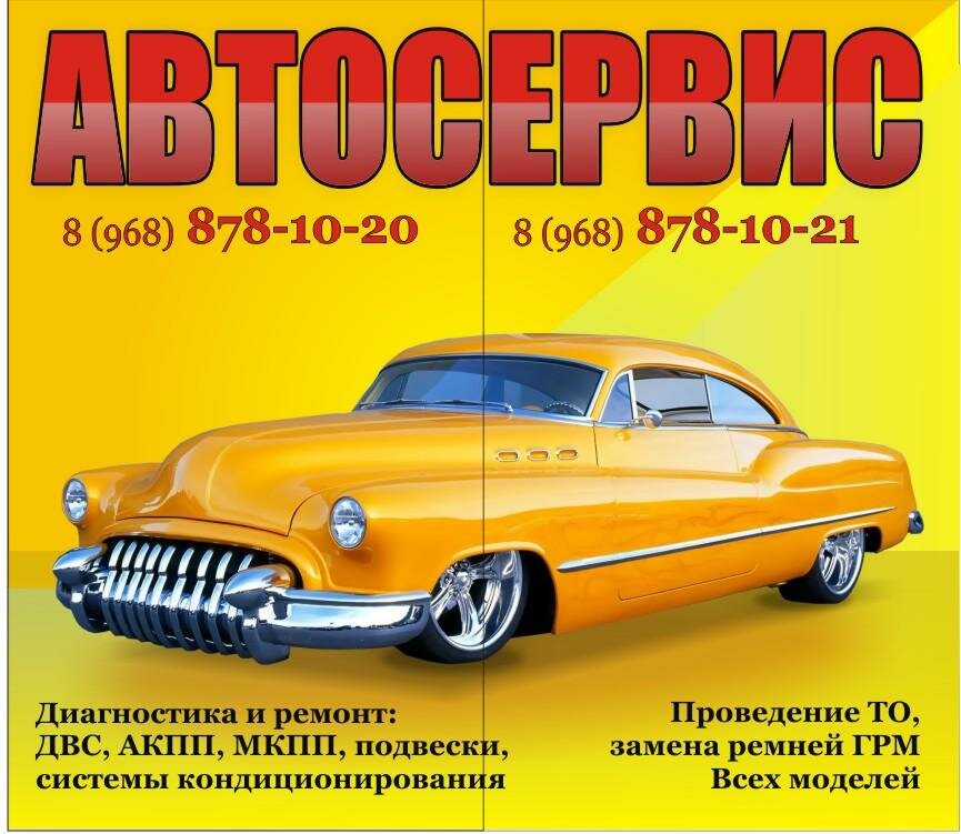 Repair sevices:pre-trip inspection, a/c recharging and repair, car window protection, exhaust system repair, repair of brake system, plastic bumper repairs, auto repair, engine repairs, full car sevice, oil changes, car respraying, installation of parking sensors, tinting, running gear repair, starter motor repairs, computer car diagnostics, car electrician repair, steering racks repairs, nozzle cleaning, fuel injector cleaning, car alarm, gearbox repair, generator repairs, polish, repair injectors, repair of drive shafts