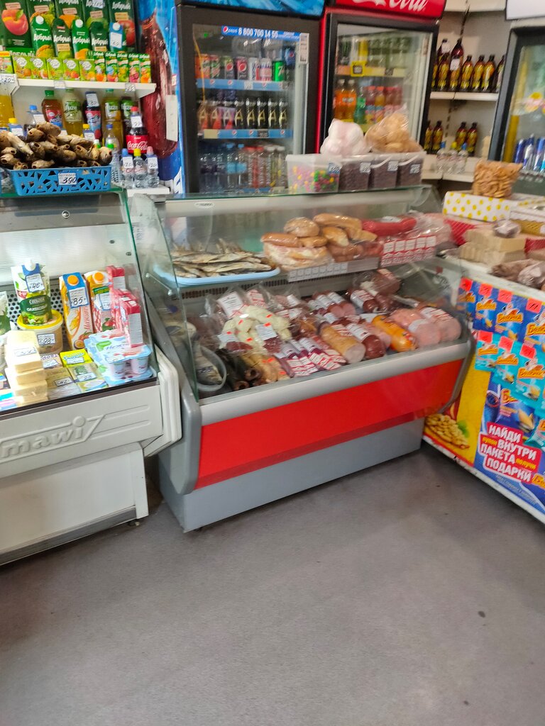 Есть всё не обходимое, еда и пиво на разлив, приличный выбор сладостей на развес, мороженое, колбасы и сыры. В общем заходите не пожалеете, народ всегда там есть.