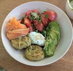 Pleasant atmosphere, beautiful Christmas tree, polite waiter. I had a bowl of squash fritters. All the ingredients are delicious, but I didn't have enough rice or bread or more pancakes themselves. The avocado was wonderful, very tender, but I wasn't very interested in eating it just like that. The order took quite a long time to prepare, I think I waited about 30 minutes. It's a pity that there are no pictures on the menu, so I would have realized that the bowl would be almost without carbohydrates, and would not have taken it.