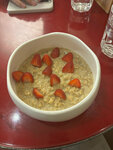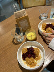 We ordered coconut-based rice porridge and cheesecakes for delivery today. Unfortunately, we were disappointed : ( the rice porridge had some strange, rather curd-like texture of coconut milk, but the main thing was the rice itself - some broken and poorly cooked, coarse pieces instead of soft grains. this happens when the rice itself is of poor quality, it does not cook evenly and does not retain its shape. the apricot jam was very tasty, so it was edible in the mixture, but of course it was completely without pleasure. The cheesecakes are fine, but the pieces of fruit that went with them were also terribly upset, the peaches (or nectarines, they couldn't determine) were simply unripe. It's sad, it feels like we're just really unlucky - the other breakfast reviews are good, and we chose them. maybe it's with delivery that this happens.