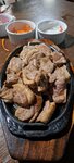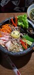 Первое впечатление от ресторана: где хоть что-то, указывающее на то, что это корейский ресторан? Кроме двух фигур для фото в ханбоках на лестничной площадке, ничего корейского. Обычный зал, обычные столы, диванчики, стулья. На этом разочарования закончились. Дальше был только восторг. Меню разнообразное и исключительно корейские блюда. Порции большие. Все очень вкусно. Ценник приемлемый. Нас было четверо, вышло 6500. Но это мы, так скажем, шиканули. Наелись досыта. Очень понравилось, что можно жарить мясо самим, но мы поленились, хотя решили, что в следующий раз обязательно это сделаем. Однозначно готова рекомендовать к посещению.