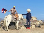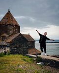 It's a great place, with a breathtaking view of Lake Sevan at the top. Next to the temple stands a funny friend with a horse and a flag, sings songs standing on one leg on the saddle and offers to do the same to everyone (the cost of pleasure is at your discretion). There is an observation deck further away, but they are not allowed on it, the police are standing and turning everyone around.