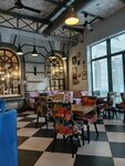 Красивое место, прикольный и удобный интерьер, довольно вкусная еда, особенно хотелось бы выделить "шашлык из цыпленка на фокаче", а так же барное меню тут уж точно можно разгуляться в особенности шоты)