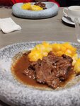 Ресторан на 1 этаже гостиницы "Медея", поэтому для меня это способ пообдать и поужинать в гостинице. как ни странно, я бы выбрала это место и для ужина в той локации в любом случае (если не выходить на Пятницкую). Особенность ресторана, кроме интересного и харизматичного интерьера, в "дикой" снверной кухне. Блюда в меню интригуют выбором видов мяса: оленина, косуля, медвежатина, семга, палтус, утка. Мне очень понравился бифштекс из оленины с яйцом пашот, печень косули в винном соусе, салат из сёмги шеф посола с яйцом пашот. Ранее также брала "котлетный триптих", это котлеты из трёх видов дичи, бефстроганов из оленины с пюре, борщ, уху из 3-х видов рыбы - тоже всё очень вкусно. Есть нюансы: мясо не парное, а шоковой заморозки, так что любителям мяса "с фермы" может и не подойти. Мне же как раз спокойнее мясо из шоковой заморозки, так как способ такого приготовления безопаснее. Обязательно уточняйте степень прожарки официанту. Кстати, всё очень внимательные и вежливые. Всё пожелания учитываются. Посуда фактурная, интересная. Любителям необычной подачи, наверняка, понравится сюрприз - кае именно принесут пирожное "картошка", обязательно закажите и узнайте)) Из напитков хочу отметить настойки местного настаивания: кедровая очень хороша, а " Северная ягода" на бруснике и клюкве в наше ко видное время - самое то. Из вин раньше брала рислинг.. немецкий очень не плох. Кофе для меня, это отдельная история, я кофеман. Но удивительно, что даже американо радует ароматом и насыщенностью. Капучино - беспроигрышный вариант всегда. Эспрессо я бы отнесла к ристретто в том приготовлении. Короче говоря, можно и нужно бывать, смело заказывать и вкусно есть! :)
