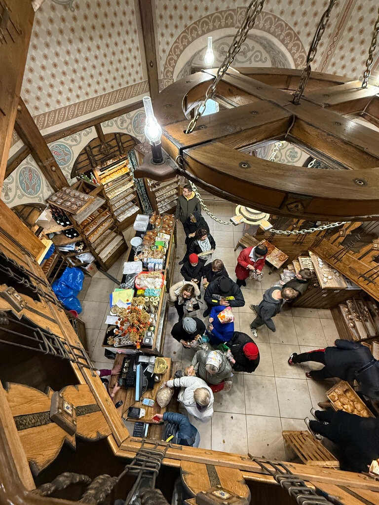 Выбор выпечки такой же как и в трапезной перл входом в монастырь. Из плюсов — интерьер трапезной, со второго этажа можно выйти на стену кремля. Из минусов — сбитень был совершенно невкусный