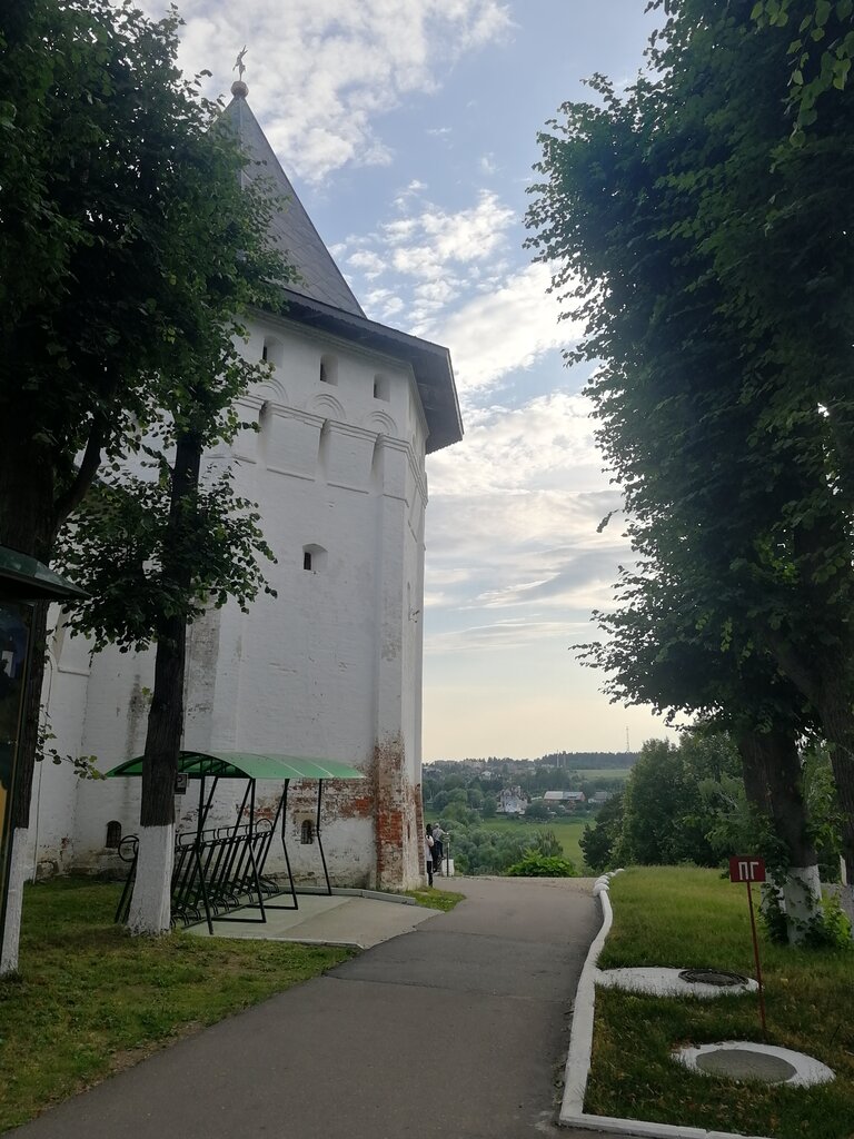 В башне сейчас - милое кафе, где можно перекусить свежей выпечкой (ее же можно взять и в дорогу) и чаем-кофе. Кофе можно выпить с видом на территорию монастыря с крепостной стены - туда есть выход прямо из кафе. Замечательно, очень рекомендую.