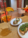 1. Заведение позиционирует себя как пиццерию. Как оказалось, в наличии пиццы нет:( 2. Брускетта с креветкой вкусная. Вторую взяли с лососем - такое ощущение, что рыбу замораживали несколько раз, вся рассыпается. На контрасте со страчателлой, вкус рыбы теряется полностью. 3. Цезарь в с курицей вкусный (будьте готовы к тому, что порции тут маленькие). Не хотелось выходить из здания отеля, по этому остановили выбор на этом заведении. В целом, имеет место быть. Лично мне не особо понравилось. Девушка официант/администратор приятная, внимательная. Напитки принесли быстро. На этом из плюсов, к сожалению, всё.