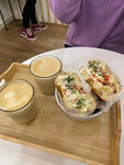Случайно забрели на кофеёк и обнаружили замечательное кафе, где можно позавтракать и перекусить. Повар готовит при тебе горячие блюда- в нашем случае-чудный ароматный бейгл, а капучино просто огонь! Есть большой выбор необычных каш, бейглов, напитков. Очень Рекомендую!