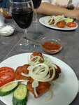 Заказали доставку. По меню заявленно люля -кебаб с говядиной и бараниной 280 гр. В итоге порция вместе с упаковкой, соусом в упаковке, луком, овощами 250 гр. Пересолен.