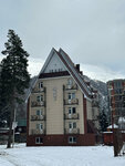 Хорошая гостиница, большой номер, вид на горы. Включен завтрак, немного однообразный - каша, яйца с сосиской, чай, кофе печеньки, но сытно и вкусно. Гостиница находится немного в стороне от основных улиц, поэтому тут тише, чем в центре поселка. Вокруг много кафе, рядом аптека, продуктовые магазинчики. До канатки 10 минут пешком, до "пятёрочки", местного рынка 15 минут.