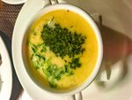 Ароматная рыбная уха на бульоне из судака и семги с добавлением креветок, овощей и каплей водки. Подаётся горячей , с зеленью. Богатый вкус моря,согревающий лучше любого камина