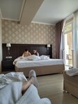 Отель находится в центре города и равноудален от галечного и песчаного пляжей. По дороге на пляж вы встретите массу кафе и столовых. Отель чистенький, ухоженный как внутри, так и снаружи. В номере хороший ремонт, открытый балкон со столиком и стульями, высокий потолок и номер очень просторный. Замок двери электронный. Активация электричества в номере происходит ключом от замка двери. В ванной комнате имеются индивидуальные зубные щётки с зубной пастой «Splat». Мы жили в номере люкс на 4-ом этаже. На конец июня 2024 цена за сутки - 4500 р. без питания. На первом этаже есть кафе и там можно заказать завтрак или купить свежую выпечку с кофе. В отеле есть современный лифт, бесплатная парковка на заднем дворе под охраной овчарки, так что, когда вы захотите выехать, то вам придется вызывать сотрудника, который эту самую собаку запирает под замок и открывает ворота. Вежливый и услужливый персонал. По правде говоря, на стойке регистрации никогда нет сотрудника, но есть его контактный номер, по которому вы его можете вызвать (меняются смены сотрудников и , соответственно, меняются номера телефонов). Это очень неудобно, т. к. иногда не можешь долго дозвониться и приходиться ожидать. Есть еще недостаток — удаленность пляжей. Придется минут 20 пройтись пешком. В целом отель оставил очень приятные впечатления.