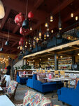 Посетили данное кафе 1 мая . Посадка можно сказать полная . Интерьер красивый , уютно, все продумано. Обслуживание не плохое. Но кухня сильно подкачала и испортила впечатление . По предыдущим отзывам . Твердая 5 , может потому что нас было много и мы попробовали практически все меню по нашему мнению кухня на 3. Заказали борщ и том ям . Обычно супа просто ни какие . За супы 2. Салаты заказали все что есть в меню. Наши фавориты салат с курочкой и жареными хрустящими баклажанами. 5+. Остальные 5 . С горячим есть блюда отлично приготовленные , а есть совсем грустные блюда. Хинкали это просто ужас , соленые фарш который внутри не лучшего качества , и не берите баранину все очень сухое, ощущение что разогревается в микроволновке. Баранину принесли еле теплую . Остальные блюда шашлык, роллы, люля кебаб, спагетти, хачапури хорошо приготовлены . В меню странные коктейли вкусные , но с большим куском льда на весь стакан. Действительно авторские коктейли. Может нам реально не повезло . Реально выбирала кафе по рейтингу .