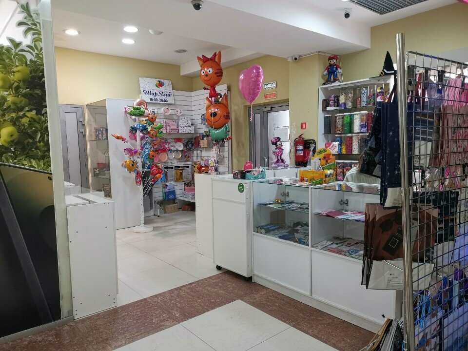Небольшой магазинчик, но есть все что нужно для любого праздника. Берём шары , открытки, упаковку, свечии и многое другое)))