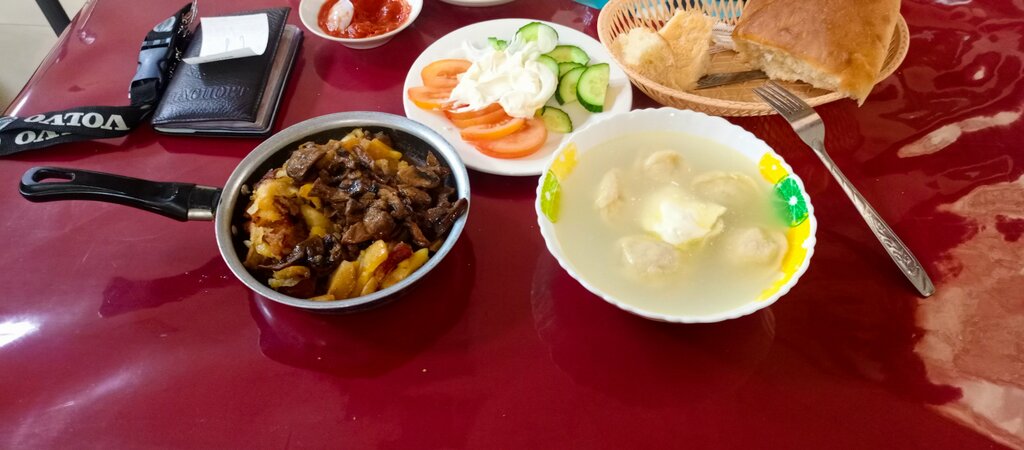 На протяжении более 100 км (от Богучар в сторону Воронежа) нам попалось единственное кафе на бесплатной трассе. Не знаю почему, но этот бизнес почему то ни кто не занимает. Кафе простенькое, меню не большое, зал чистый, мебель как из кафе 1990 года, а всего скорее так оно и есть. Туалет на улице деревянный для экстрималов. Двери до конца не закрываются и естественно не открываются. Персонал приветливый и адекватный. Я с женой заказали борьщь, бозбаш с баранины, два салата, по порции шашлыка, по чашке чорного кофе. Жена себе взяла себе на гарнир картофель фри, я порцию пельменей. Теперь по качеству пищи первые блюда сносные на вкус , во всяком случае борщь, бозбаш отвратительный как будто повару не хватило времени его доверить. Всё в бозбаш Альберто, ну и навара со ответсвенно ни какого. Салаты были не плохие, ну а шашлык испортить трудно, тем более готовил его мужчина южной национальности. Но а покупные пельмени они варить умеют., тут не придраться. В общем делаю вывод: кафе естественно не три звезды Мишлена но если ты очень голоден то в полне сойдёт. Да и к стати там есть банкетый зал и мужчина при мне заказывал банкет, как он выразился "побухать с пацанами".Бухлижко придется своë приносить, потому как лицензии на алкоголь у них нет. Во всяком случае я не заметил в продаже крепкого алкоголя, да и вообще како го то другого. В общем если вы не эстет, голодны и вам всë равно где справлять естенсвенную нужду , то добро пожаловать.