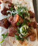 Мангальщик мастер своего дела! Он готовит и навынос и для кафе Софья. Мясо тает во рту. Брали баранину, курицу, свинину. Все нежнейшее и не сухое