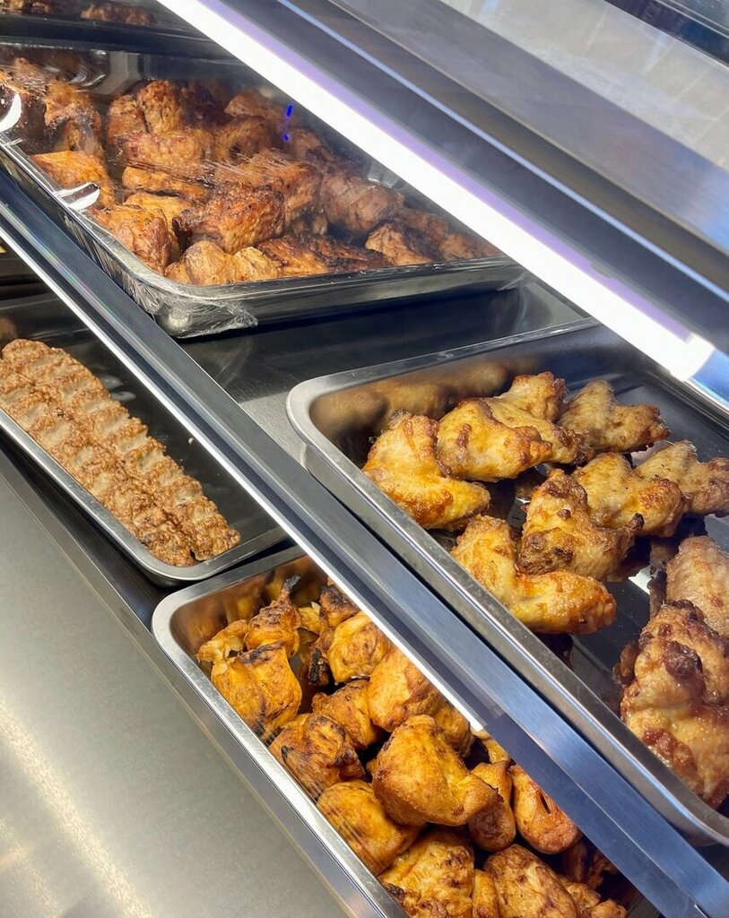 Не пойму, отзывы накрученные что ли, все счастливы и в восторге. В мой визит была только шаурма и Донар, мясо свинина и курица. Сделали минут за 7с булку не сушили, она развалилась, да и булка старая крошится, шашлык местами попадался с жилками, даже доедать не стал, морковкой да мясом пришлось обходиться. В заведении пустовато, мясо на витрине готовое и люля, из этого и делают донар и шаурму. Если просрусь то дополню отзыв.