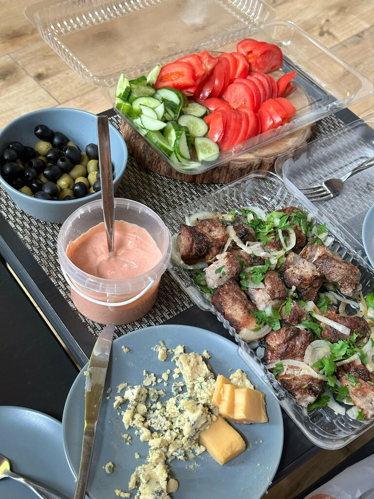 Отличное мясо! Надо звонить и заказывать, что хочется заранее! Внутри не очень приветливый интерьер, как мне показалось, кафе на вынос! Хозяин с душой, отлично готовит, держит прекрасные цены за свое шикарное качество! Брали шашлык из шейки, люля, салат и соус!