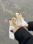 Купили шаурму здесь, брал 1-й раз, очень порадовал с виду милый молодой человек, без негатива дождался нашего выбора (выбирали минуты 3-4). Минут за 7 приготовил среднюю шаурму. Большую приготовил наверное за 9-10 минут. Удивился впервые увиденному в Липецке, что в конце мажут соусом, до этого видел только в видео на ютубе из Москвы. Шаурма сытная, всего хватает, не сухая, там вроде 2 или 3 соуса. Так же можно добавить разные добавки, но это не какое-то новое открытие, но все равно приятно.