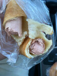 Сказали сосиску в тесте сегодняшняя Но сосиска протухла на вид и на запах ужас Так и отравиться можно! Что долго стоит на прилавке то нужно выбрасывать а не продавать и травить людей