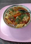 Заказывал лагман, лепёшки и самсу с говядиной, выглядит красиво, лагман вкусный и горячий, единственное что мало специй и мяса пару маленьких кусочков, самса посредственная, мало специй и пресная, лепёшки суховатые, помещение чистое, есть розетки, персонал дружелюбный.